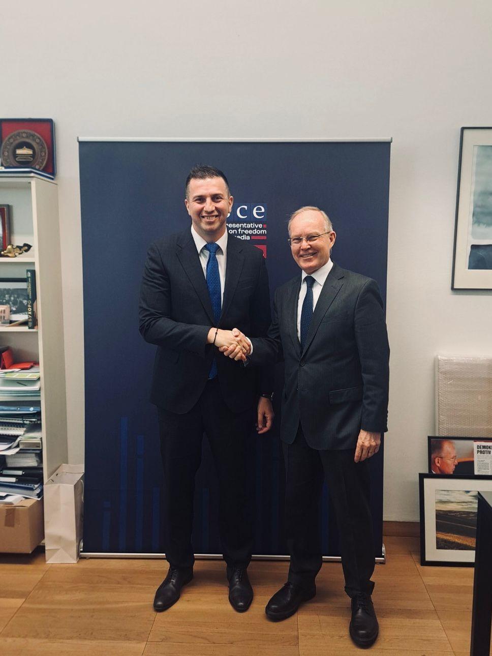Με τον Εκπρόσωπο του Οργανισμού για την Ασφάλεια και τη Συνεργασία στην Ευρώπη αρμόδιου για την Ελευθερία των Μέσων Ενημέρωσης Jan Braathu, συναντήθηκε ο Γενικός Γραμματέας Επικοινωνίας και Ενημέρωσης Δημήτρης Κιρμικίρογλου,που επισκέφθηκε τον ΟΑΣΕ.